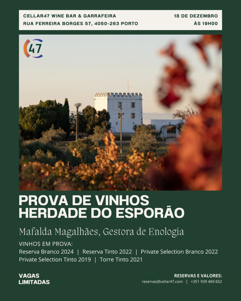 Uma viagem ao coração do Alentejo através dos icónicos vinhos da Herdade do Esporão. Mafalda Magalhães – Gestora de Enologia. 18 de Novembro, 2025 – 19h00